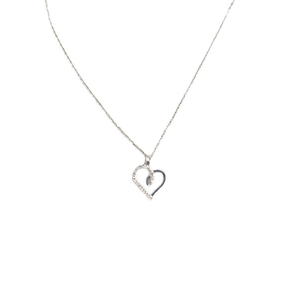Κολιέ Stainless Steel Καρδιά Πλεκτή με Strass Ασημί