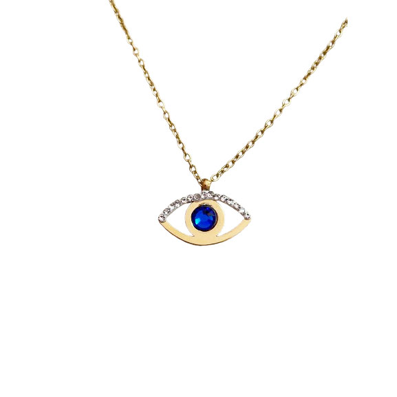 Κολιέ Stainless Steel Οβαλ Μάτι Με Μπλε Strass Χρυσό