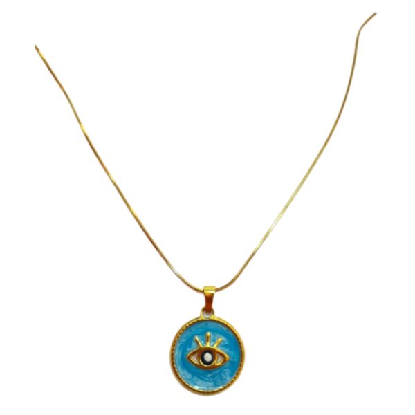 Κολιέ Stainless Steel Μάτι Στρογγυλό Μπλε Γυαλί