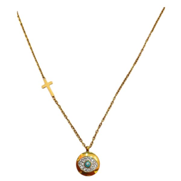Κολιέ Stainless Steel Μικρό Μάτι με Σταυρό Strass Χρυσό